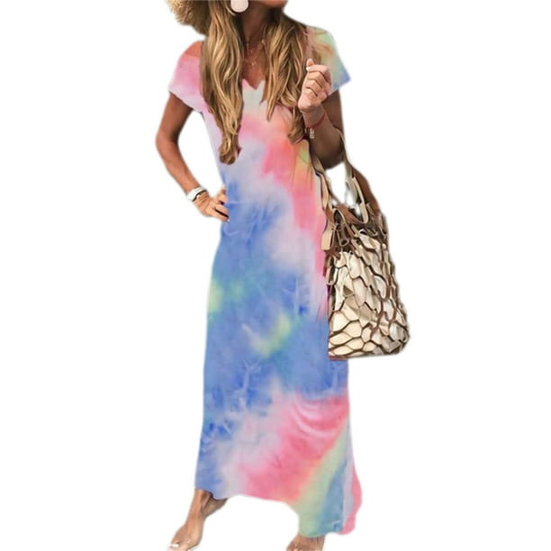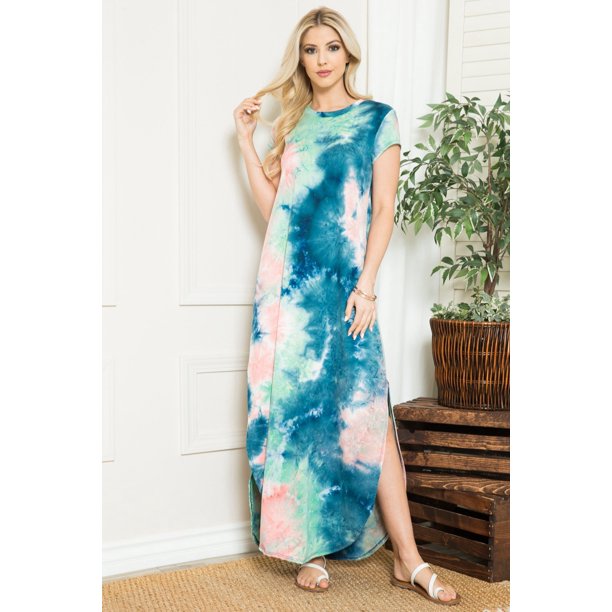 Pink4you Tie Dye Short Sleeve Maxi Dress With Side Slit Walmart Com Walmart Com